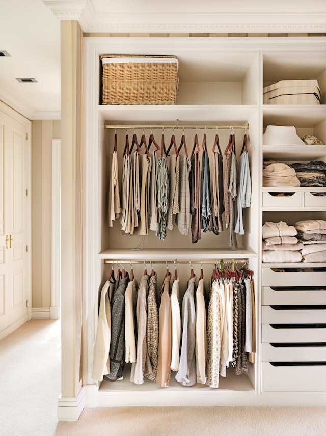 Сопственикот имал многу облека, и долга и кратка, па голем дел од просторот бил поделен со решетки. Висечките модули се широки 140 cm: тие се широки и не дозволуваат туткање. Висината зависи од облеката: околу 110 см за кошули и јакни; 90 см за панталони; и 170 см за фустани.