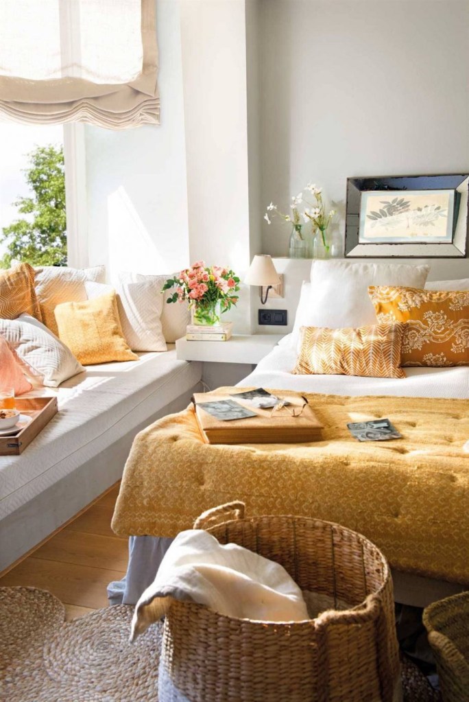 Овој простор во спалната обично е неискористен, и е идеален за поставување мебел за складирање (тесна комода) или создавање клупа за читање со перници. Просторот под седиштето може да се користи како простор за складирање.