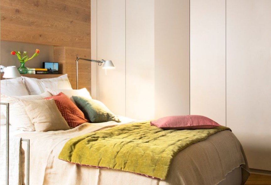 Искористете го максимумот од вашата спална соба, без разлика колку е мала на најдобар можен начин – со слободен простор над креветот. Направете мост со кабинети или отворени полици каде ќе ставате облека и работи кои не се од тековната сезона или кои поретко ги користите. Поврзете го мостот со кабинетите на страните на креветот.