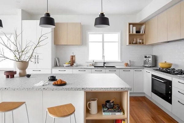 Што се однесува до дизајнот на кабинетот, во 2023 година можете да изберете од две главни опции – минималистички стил каде што ќе видите помалку рачки и кабинети со рамна предница украсени со рачки што привлекуваат погледи. Системите за автоматско отварање и оние кои бараат притисок врз самата врата сè уште се тренд што ќе им олесни на страствените готвачи.
