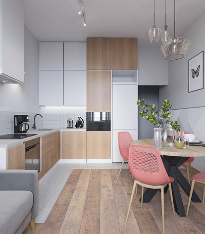 Најдобро од сè, дрвото и зеленилото се комбинираат едни со други. Во првиот случај, тоа може да биде мебел, под (на пример, ламинат), декор, прегради со летви, па дури и ѕидни облоги. Сето ова ќе биде органски надополнето со живи затворени растенија во прекрасни саксии или само акценти на бои во природни зелени тонови. Белата боја во овој случај ќе стане универзална основа, освежувајќи ја внатрешноста и поврзувајќи ги активните текстури заедно. Овој опсег изгледа особено органски во еко, сканди и бохо-стил.
