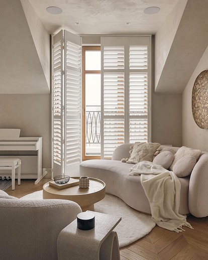 Една од најдобрите комбинации со бело во внатрешноста ја даваат мирните природни нијанси во топли бои: