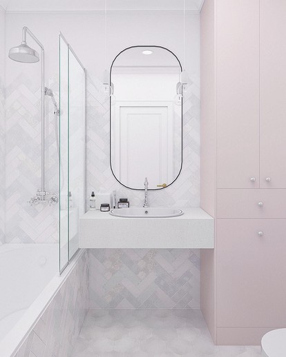 Ахромат во овој случај исто така најчесто се користи како основа: на пример, за ѕидови, тавани, целокупен мебел. Во зависност од тоа што друго е вклучено во шемата на бои, тоа може да биде ладен снежно-бел тон (комбиниран е со нане, сина, лаванда, ф’стаци) или топол крем (изгледа добро во друштво на праска, бледо жолта, тревна, лосос). Оваа палета често се користи во детските соби и спални соби, бидејќи е многу нежна, удобна и погодна за релаксација. Но, ако се вклопи во целокупниот концепт, тогаш комбинацијата на пастелни бои ќе се вкорени во дневната соба, бањата, па дури и во ходникот.