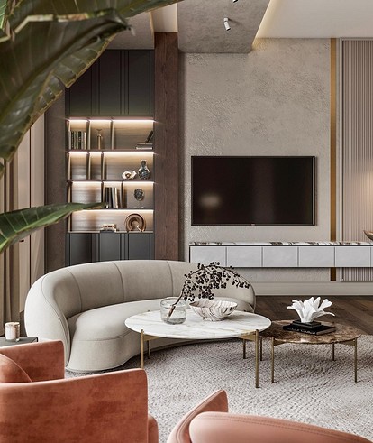 Фокусот самоуверено се префрла на создавање на најпријатна и удобна атмосфера, што значи дека сите форми и силуети ќе бидат омекнати. Веќе сега во модерните ентериери, правоаголниот мебел со изразени агли се заменува со мазни, заоблени линии: тркалезни фотелји и маси, светилки во облик на топка, софи во форма на полумесечина, школки, острови. Во тренд се сите рационализирани форми и разновидни текстури кои се влеваат една во друга и го прават просторот еден. И тоа не мора да биде совршено рамен круг – обрнете внимание на вродените форми со нивните несовршености, а понекогаш и отсуството на беспрекорна симетрија.