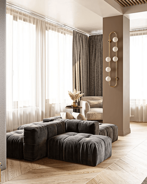 Внатрешниот дизајн сега доживува ера на функционалност и разумен минимализам, чиј концепт совршено одговара на идејата за модуларен тапациран мебел.