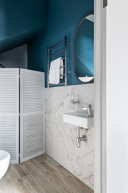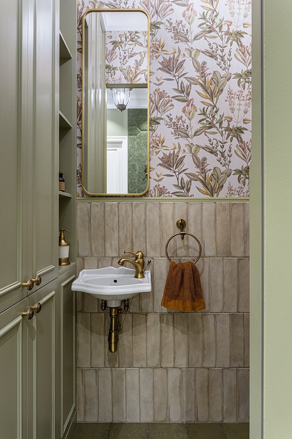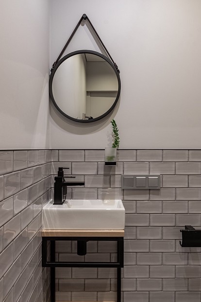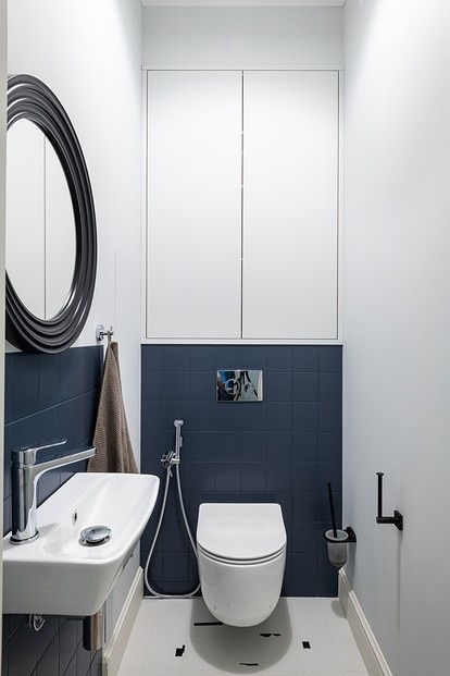 Скандинавскиот стил е љубов кон светлината, белата боја, практичноста и функционалноста. И, исто така, за удобност. Погоден е керамички мини мијалник за тоалет со светла боја. Лесниот камен исто така ќе биде соодветен: природен или вештачки