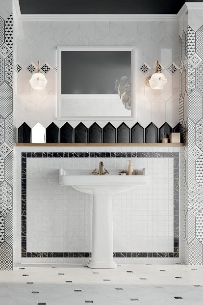 Но, едноставна бела керамика исто така ќе биде соодветна. Формите се по можност рационализирани, мазни.