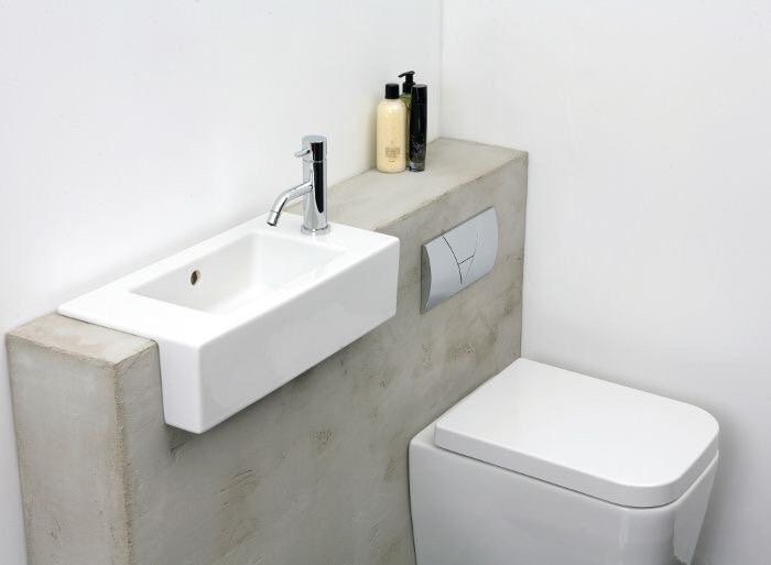 Рационално решение за многу мали тоалети. Постојат модели на тоалетни шолји, каде што мијалникот е веќе вграден над цистерната. Ова е еден вид моноблок.