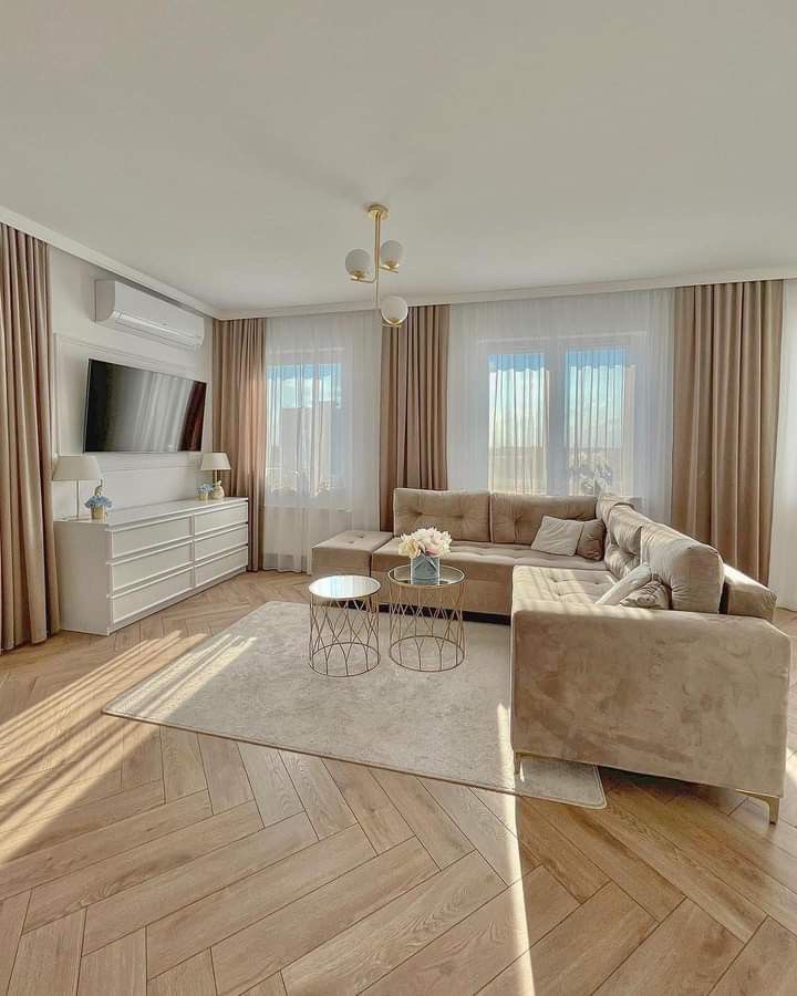 Беж бојата, како белата, е универзална за соодветни бои. Соба во беж боја изгледа природно и удобно.