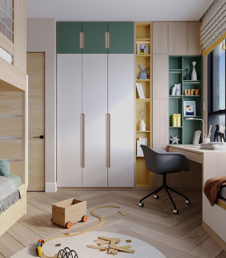 Кога детето оди на училиште, неговата гардероба значително се зголемува. Не се додадени само училишни униформи, туку и спортска облека, опрема и неколку пара чевли. За овие цели, потребна е удобна пространа гардероба, просторот за кој мора однапред да се обезбеди во гардероберот. Дополнете ја неговата опрема со странични или полици со шарки, полици за книги и разни ситници.