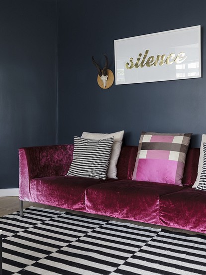 Спротивно на очекувањата и правилата, дизајнерите не се недвосмислени во фактот дека светлата боја е погодна само за светли ентериери во мали количини. Можете да експериментирате!