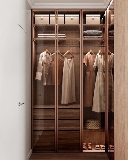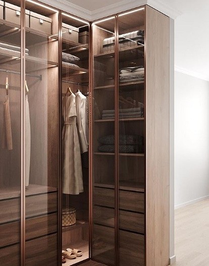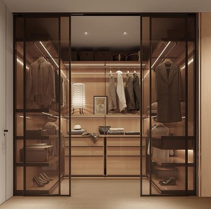 Гардеробите се украсени со слепи ѕидови или стаклени прегради.