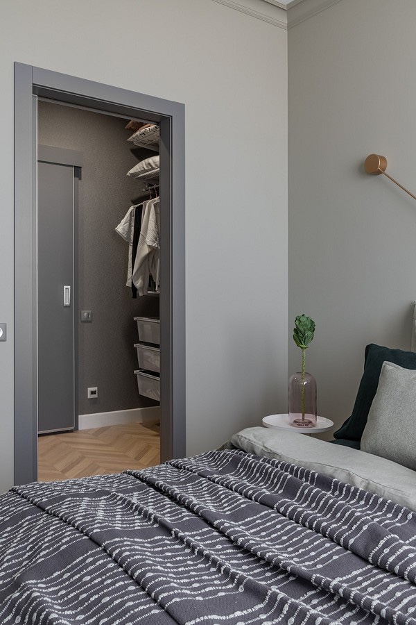 - Посебна соблекувална ви овозможува да не ги натрупувате просториите со непотребен мебел. Дури и ако земете дел од просторот за живеење под него, визуелно собата ќе изгледа комплетна.