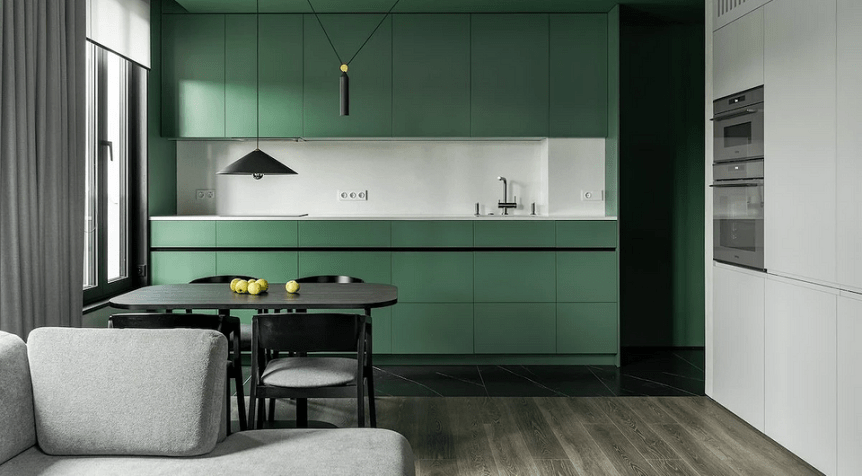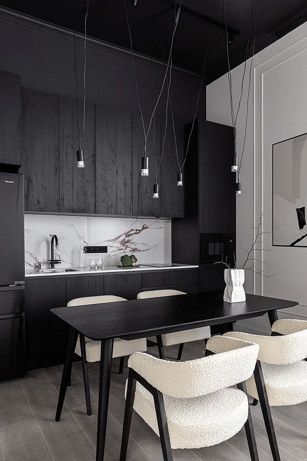 Црната – класика надвор од трендовите, но во 2025 година акцентот се префрлува на текстурата. Во тренд се темни “софт тач” површини, елегантни и минималистични. Секако, на мат црниот мебел добро се забележуваат нечистотиите, но популарноста на решението говори за тоа дека во некои случаи практичноста може да се жртвува.