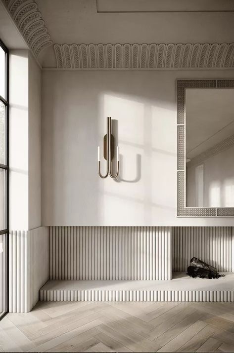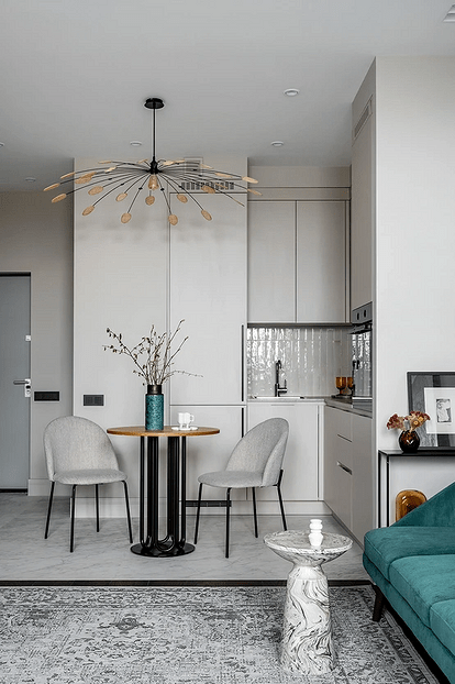 - Млечно бела: Мека нијанса на бела со бежов потон, која потсетува на топло млеко – најактуелната алтернатива на ахроматот во класична варијанта. Соодветен е за основна улога за било кои простории, стилски универзален. Се комбинира со природно дрво, пастелни и акцентни бои, темни нијанси.