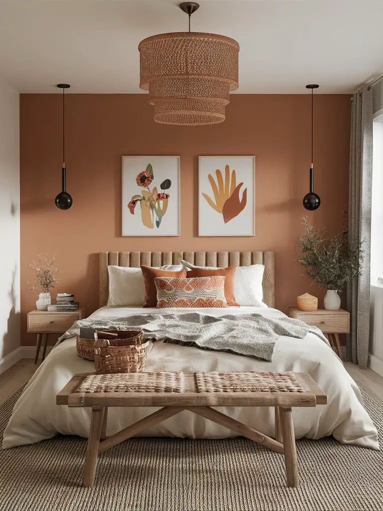 - Теракот: Теракотот е една од главните бои на идната година. Идеално ги балансира светлината и природноста, го исполнува просторот со топлина и при тоа не го оптеретува. Ова е побезбеден избор од чистиот портокал или црвена. При тоа е попатен и смел од основниот беж.