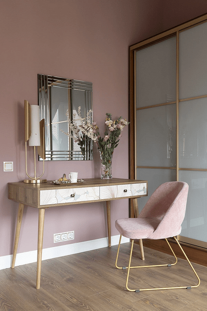- Розов кварц: Боја на природниот камен не изгледа како јака розова – трендот на естетиката на Барби веќе поминува, а на негово место доаѓа повеќе благороден, поблизок до сивиот вариант. Таквата нијанса на розово може да се користи како основа на палетата: на пример, да се насликаат сите ѕидови во него, а да се дополни со бела, сива или светло дрвена мебел.