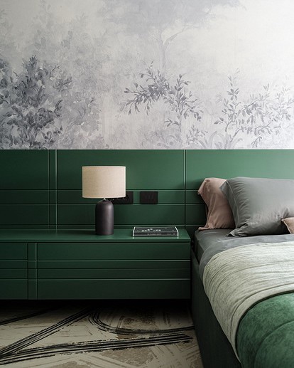 Богато зелено, инспирано од шумските пејзажи, најчесто се избира за мек мебел, но во таква верзија може да се најдат и шкафови, комоди, ноќни комоди. Популарноста на нијансата е поврзана со општиот тренд на еколошки и опуштени дизајни. Зелениот одговара на улогата на јакиот акцент во ентериерот, каде преовладуваат топлите неутрални нијанси. Во комбинација со дрвени и метални елементи, лесното зелено го прави просторот пријатен и стилски.
